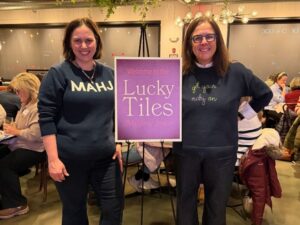 Mahjong instructors Angela Buikema and Colleen Loftus at the mahjong league they